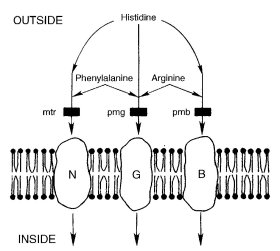 VR. Between leu-5, ure-2 and am, his-1 (3%) (950).