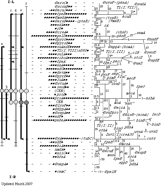 The top of the diagram represents the conventional left of the chromosome, and the bottom, the right. See below and I Linkage data