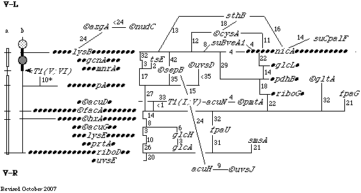 separated by T1(V;VII). The bold vertical line shows that this translocation has been