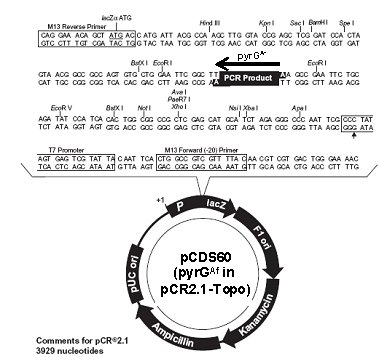 The pyrGAf cassette was generated by PCR from pCDS60 using primers CDS164 and CDS165