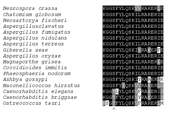 DNA sequence obtained directly from PCR amplified genomic DNA from strain 2172 showed a single C to T transition at position 293 of the coding sequence of NCU05515.3. This results in a serine to phenylalanine change in the polypeptide at position 98. The serine at position 98 is conserved among most fungi but in some higher eukaryotes, this position is occupied by a threonine (Figure 1). This region is part of a J-like domain and is thought to interact with Tim14 via hydrogen bonds (Mokranjac et al., 2006).