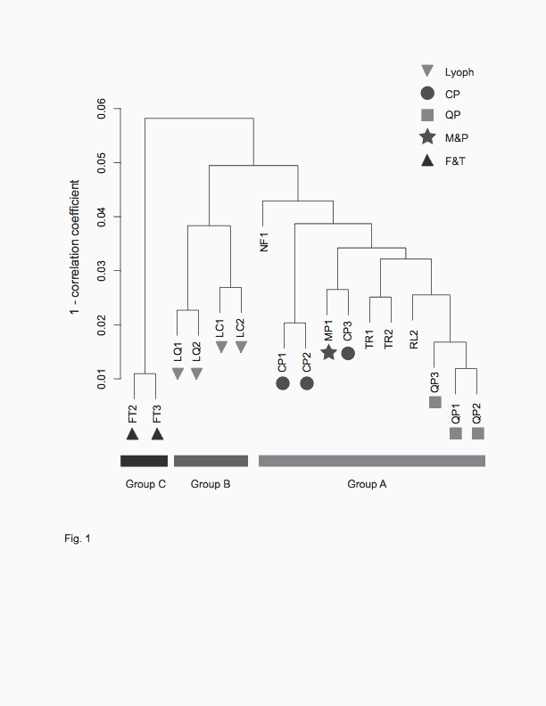 mortar and pestle under liquid nitrogen (method M&P) and those using lyophilized