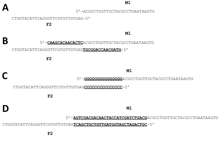 crosses over with its complementary sequence in the FPCR constructs. The complementary portions of the marker