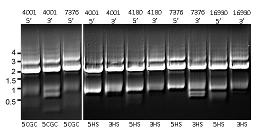 heterogeneous sequence overlaps (HS, right panel). Numbers at left indicate