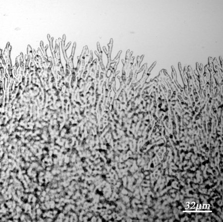 Micrograph of hyphae grown between sheets of cellophane for 24 - 48 hrs at 25 C