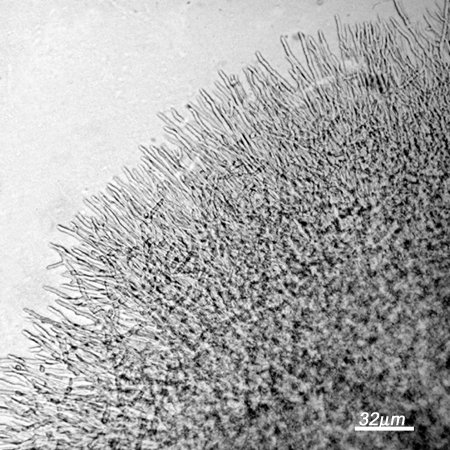 Micrograph of hyphae grown between sheets of cellophane for 24 - 48 hrs at 25 C