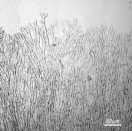 Micrograph of hyphae grown between sheets of cellophane for 24 - 48 hrs at 25 C