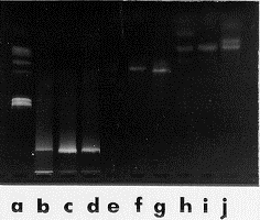 d, g, j Trichoderma harzianum. Lane a is the marker.