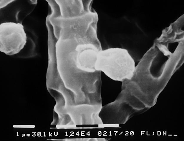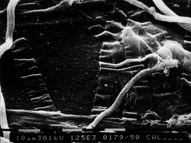microscope on 2% gluteraldehyde/1% paraformaldehyde fixed material treated with